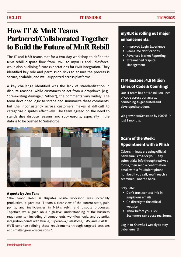 I co-founded the IT Marketing initiative to bridge the communication gap between technical operations and executive leadership. By developing a strategic visual presence—including the 'IT Insider' newsletter and custom infographics—I transformed complex departmental data into engaging narratives for stakeholders and CEOs. This role allowed me to spearhead our internal social media strategy and create a consistent brand voice for a high-visibility department.