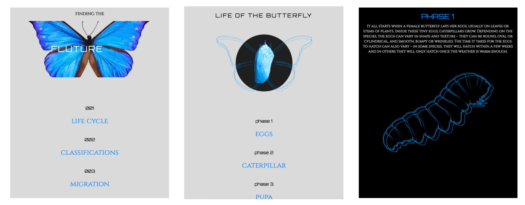 Metamorphosis Digital Experience: A futuristic and minimalist educational site exploring the lifecycle and migration of butterflies. This project emphasizes a clean, 'pretty' UI and a simplistic layout to create a modern, high-end feel for scientific content.