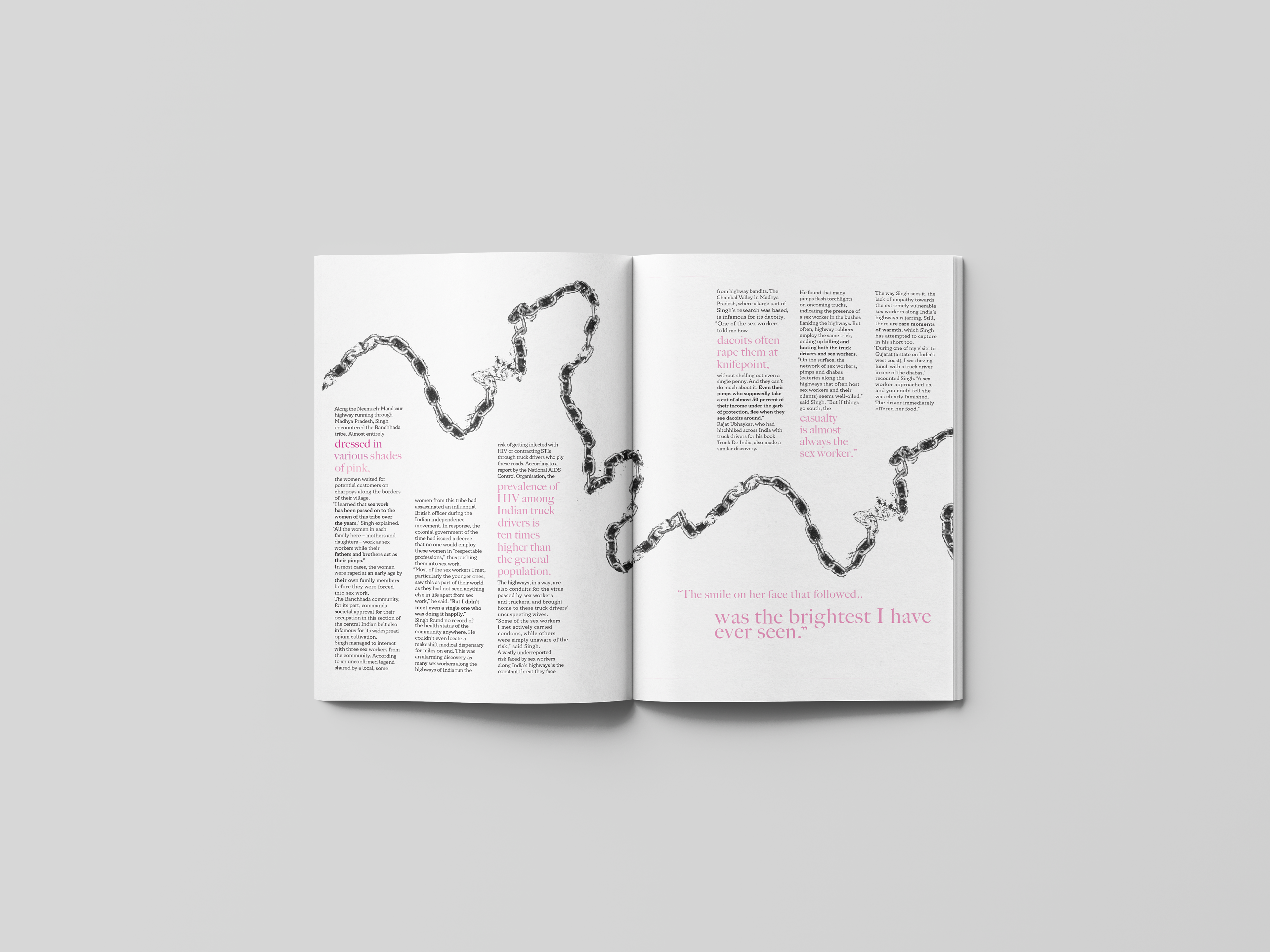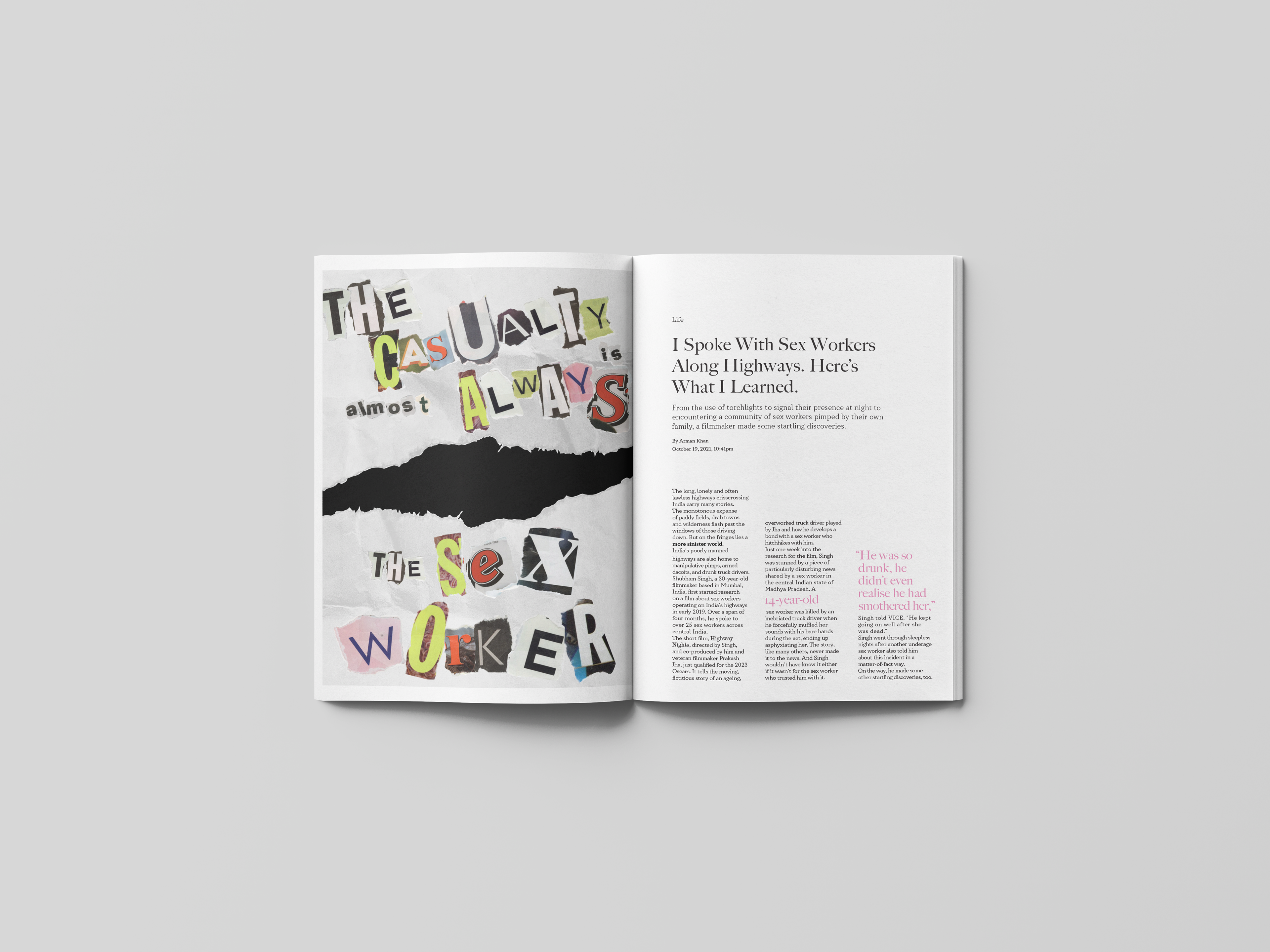 Objective: Design a 4-page magazine spread of a Vice article