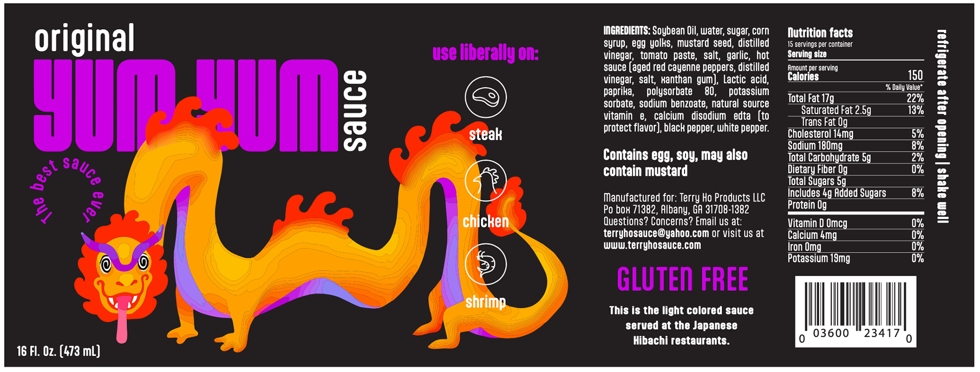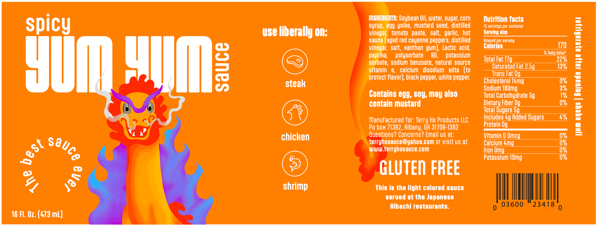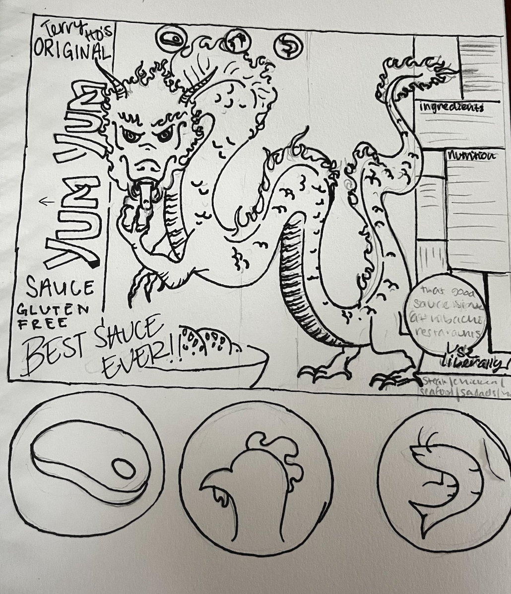 For the Yum Yum Sauce redesign, I developed a high-energy visual identity centered on bold typography and a vibrant color palette. Drawing inspiration from Japanese folklore, I conceptualized a custom dragon mascot to serve as the brand’s focal point. By designing the mascot to actively interact with the product—rather than just sit alongside it—I created a dynamic, engaging composition that demands consumer attention.